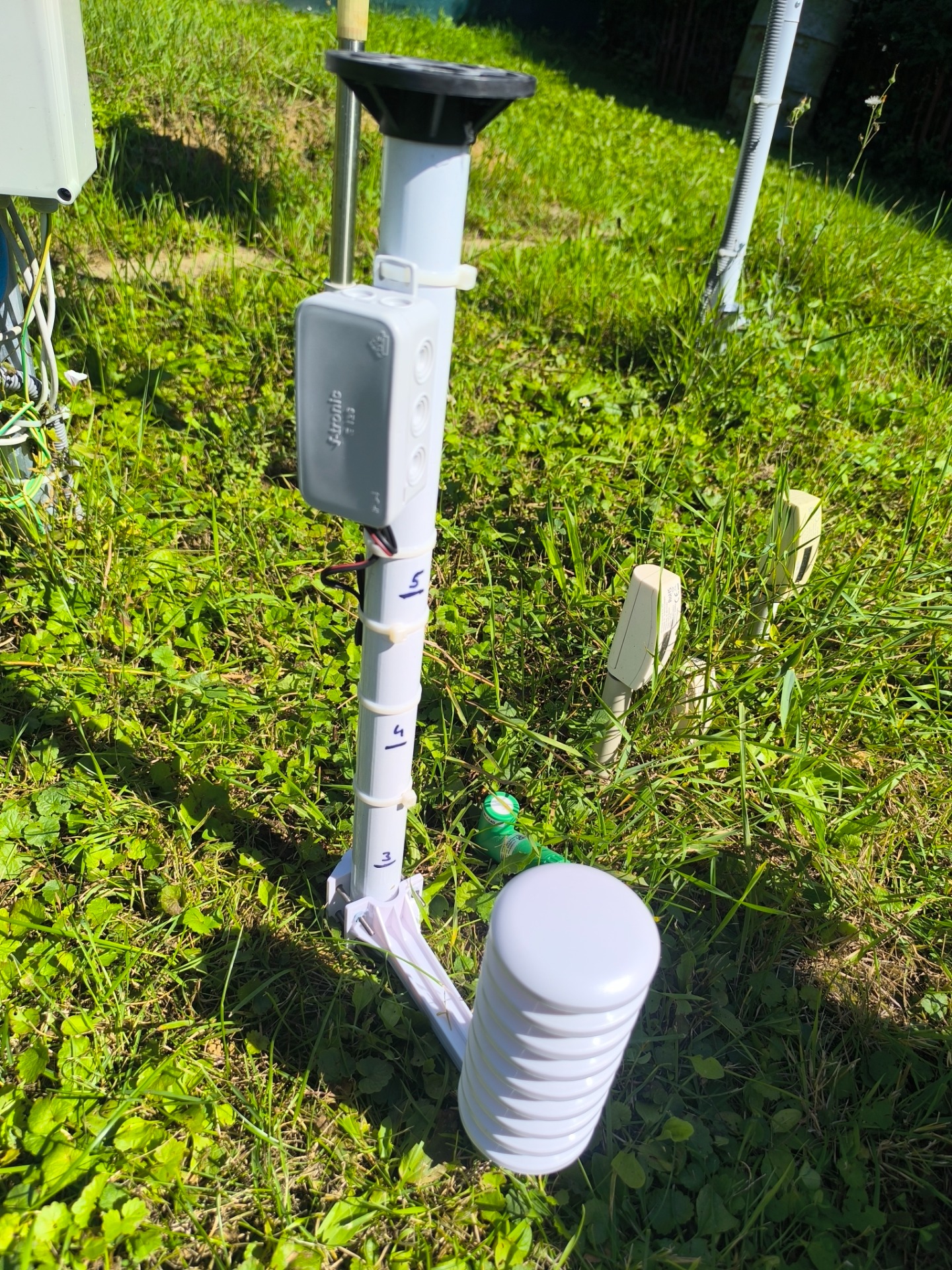 Hlavný vonkajší teplomer spoločne s vlhkomerom a meračom tlaku je umiestnený vo výške 2 m nad zemou a meria aktuálnu teplotu vzduchu, vlhkosť a atmosferický tlak. Na tomto stanovisku je tiež umiestnený jednoduchý "zachytávač" bleskov ktorý monitoruje búrkovú činnosť v okruhu 40 km. Vyhodnocuje približnú vzdialenosť blesku, čas kedy nastal a počíta tieto blesky v 24 hodinovom intervale.